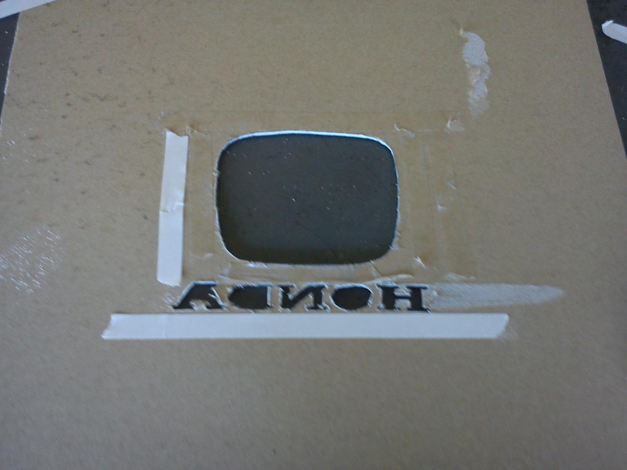 5. Apply double sided tape to the rear of the carboard stencil