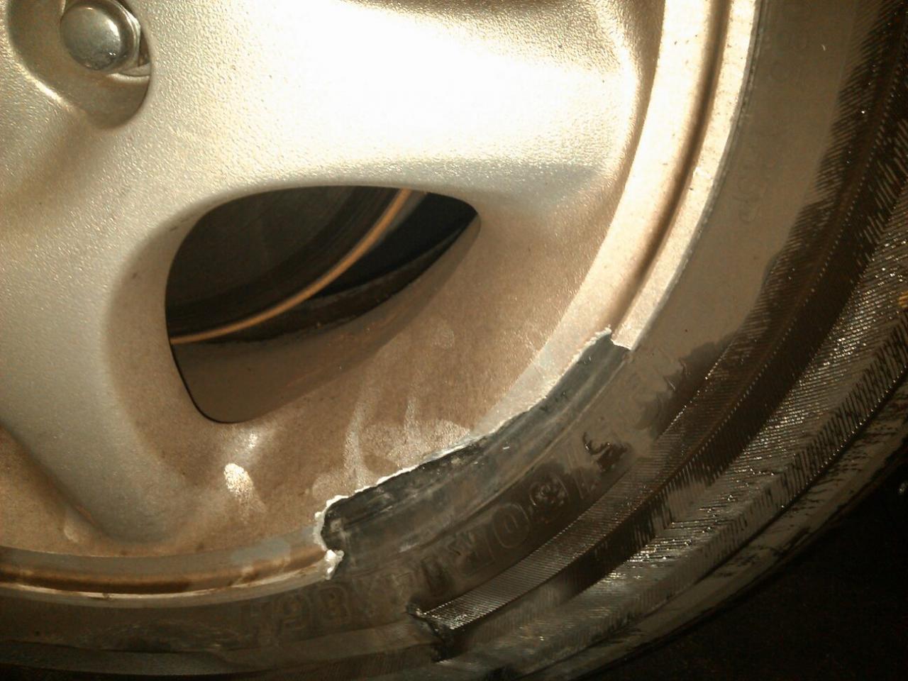 Now would this wheel be repairable? I've lost a pretty decent sized chunk out of this (got a taste of RWD action in the process.. never use shit tyres). If not would anyone know what type of wheels I'm running? AFAIK they're OEM 14x5.5s but not sure of style/where to get one.. thoughts? See pics for the wheel and the aftermath.
