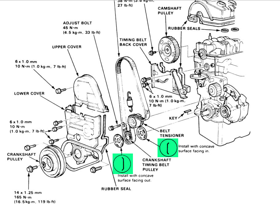 So has anyone here ever changed the timing belt on a D16Y4 and can let me know if there's one or two plates on it ? I've attached two diagrams with the drive pulley plates highlighted. I also did a search on this forum and i noticed someone already asked the question on whether there was a specific service manual for the D16Y4. I rang honda and they said that the manual was out of print. Anyone here know where i can find one ?