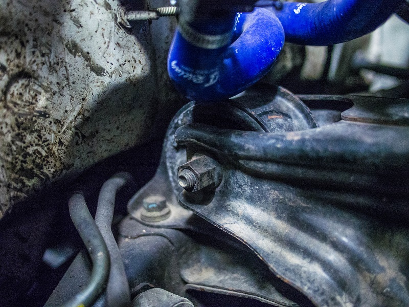 In any case, I replaced the O2 sensor earlier tonight and whilst under the car, noticed this metal rod protruding out near the crank shaft. I'm pretty sure I've heard somewhere that on certain models like DC2 Integras they had an engine mount here - refer the circled orange bit: