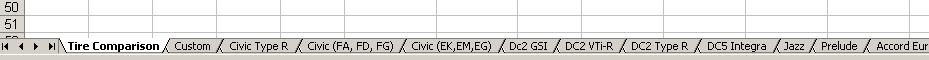 and before you begin.. at the top of each tab there is a Table you need to enter your specific variables (ie, Tire size, Rpm Shiftpoints)