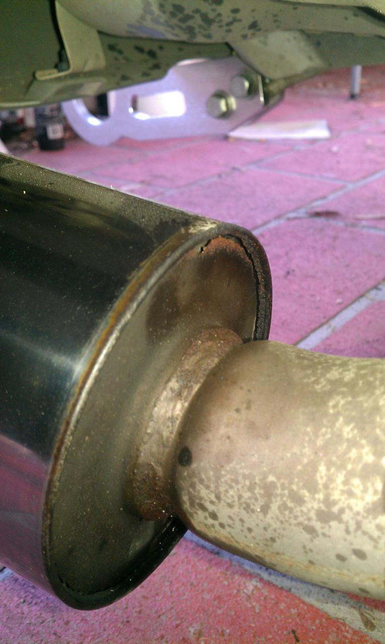 As you can see, The back of the muffler is rusting and has cracked. I think it's been there for awhile since I've always noticed my exhaust had that spitting air sound. It was only today I found out that air was leaking out of it when i placed my hand behind my muffler.