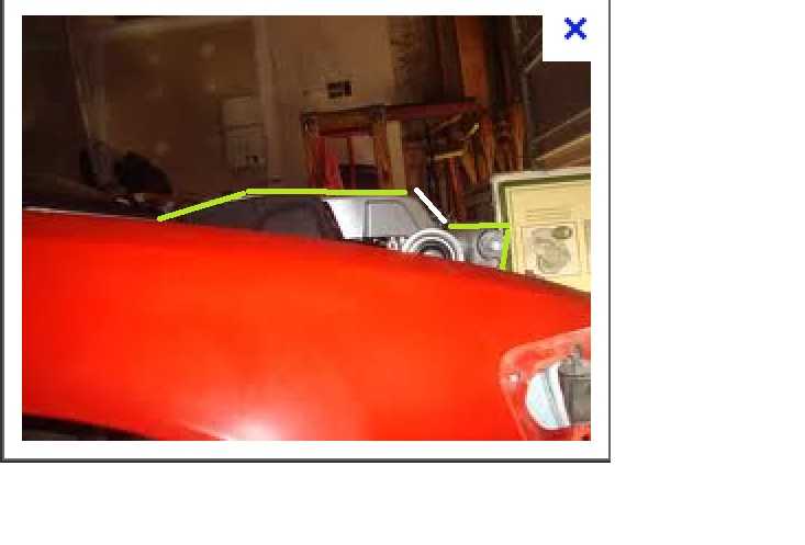As for clearance, the k is too big to fit under a standard bonnet, terrible picture, but the green outline is where the top of the motor/intake manifold is. you can see the bonnet.