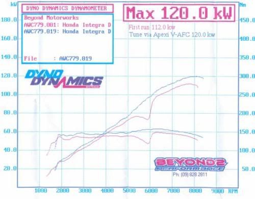 Beyond Motorworks is known for not having a generous dyno figure.. but yeh, you can see my orignal curve was shit.. lost power at Vtec, then shooting up 20kw's within about 300rpm.. after the tune it feel so much smoother to drive, not noticably faster though.. i still think the vafc was a mint buy.. hey i only paid 250 for it..Quote: