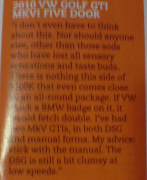Well, here is a blur magazine review from a guy who have both manual and dsg version of the Mk5 Gti
