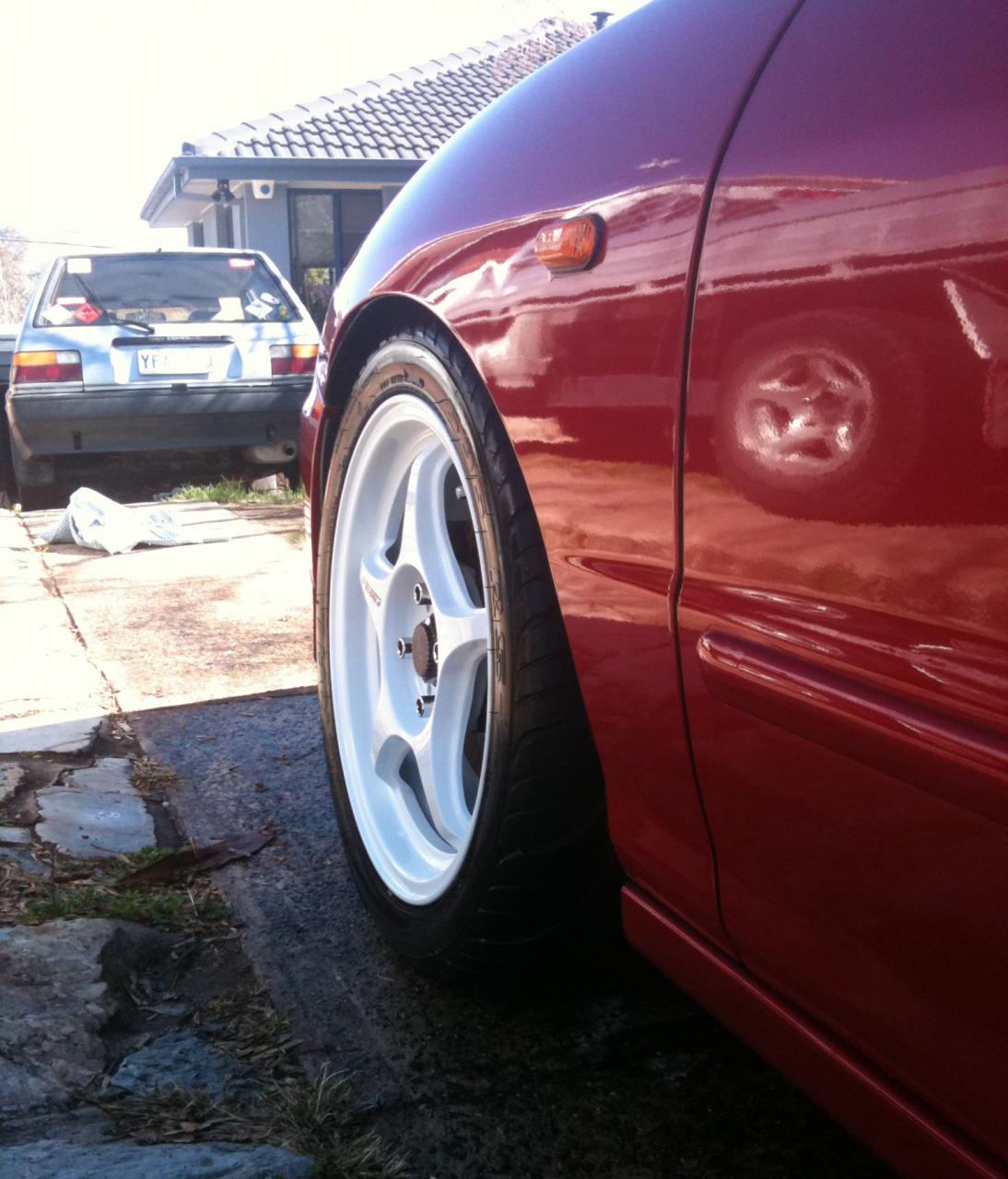 Enkei tarmacs fitted. Now to find some tyres in the correct profile. Thinking federal 595rsr..