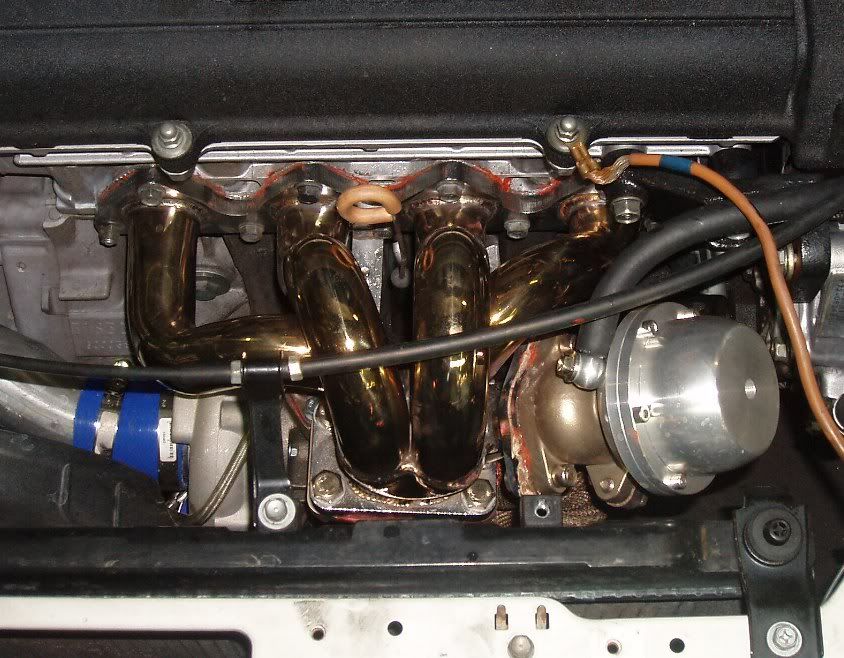 sorry dude , hard to say but that is wat is known as an ss autochrome manifold, that is wat i used with my turbonetics t04e in my first integra turbo , i didnt break it but i will be replacing it , i recommend you do the same as they are cheap crap, as for making 200kw , i am process of doing more than that but on a fully built motor, the most youll make with that kit will be around the 140-150kw mark , but dont expect to much more, but nice goin so far looks good